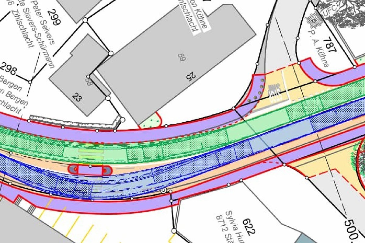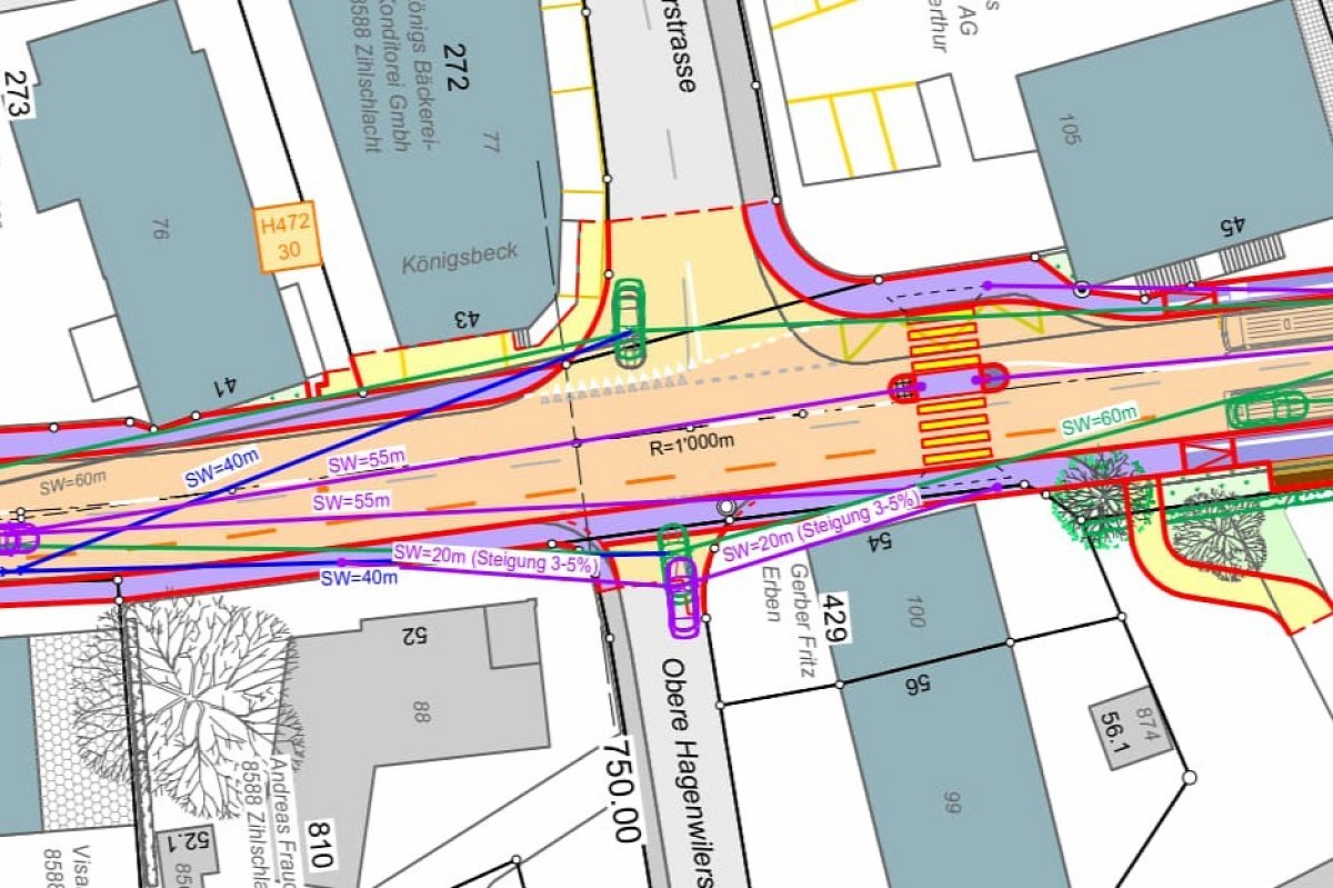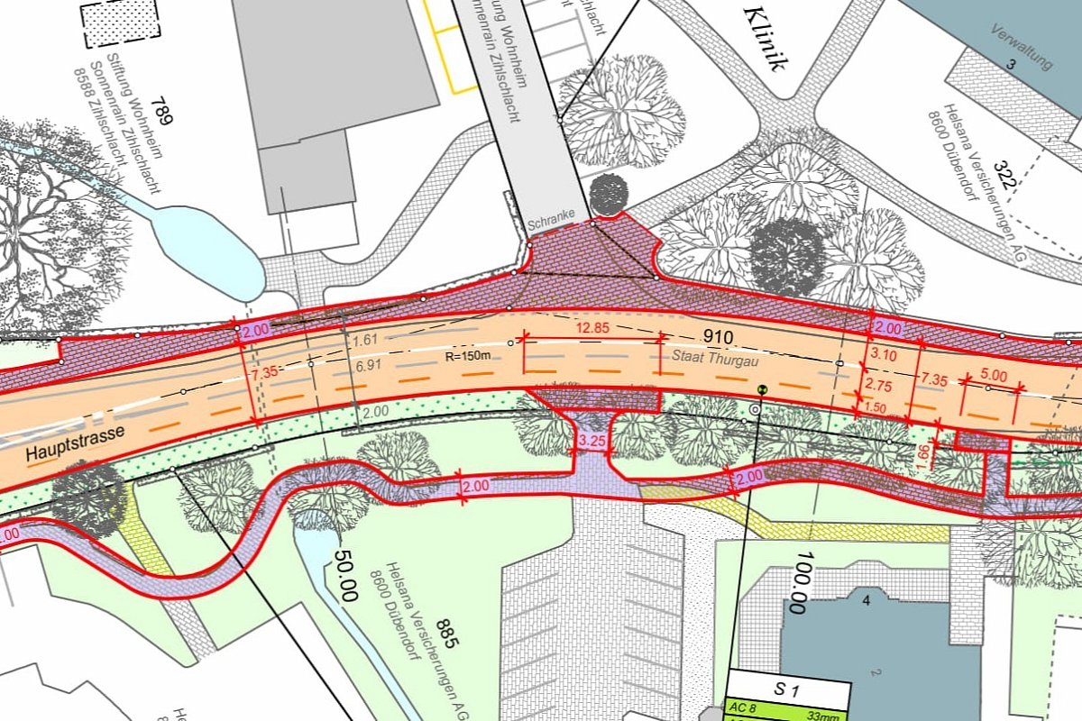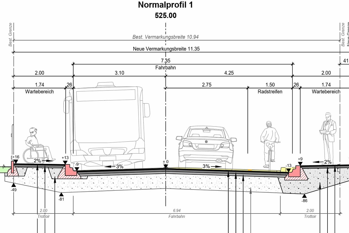 Die Ortsdurchfahrt entspricht nicht mehr den vielseitigen Anforderungen einer zeitgemässen Strasse. Das Betriebs- und Gestaltungkonzept (BGK) hat das Ziel, die Sicherheit und die Aufenthaltsqualität im bebauten Strassenraum zu erhöhen. Insbesondere sind Gefahrenstellen zu eleminieren und die Verkehrssicherheit von Fussgängern und Velofahrenden zu verbessern. Im Rahmen des BGK wird die Fussgängerlängsführung neu angeordnet. Die bestehenden Busbuchten werden als Fahrbahnhaltestellen ausgeführt. Der dadurch gewonnene Platz wird begrünt. Für den bergauf fahrenden Veloverkehr wird ein Radstreifen markiert. Zur Verbesserung der Verkehrssicherheit sind zudem Fussgängerschutzinsel vorgesehen.