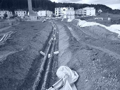Tiefbauarbeiten für Fernwärmeleitung (starre Rohre) im Bereich Schulhausanlage, Altersheim und Wohnquartier. Koordination mit dem Leitungsplaner.