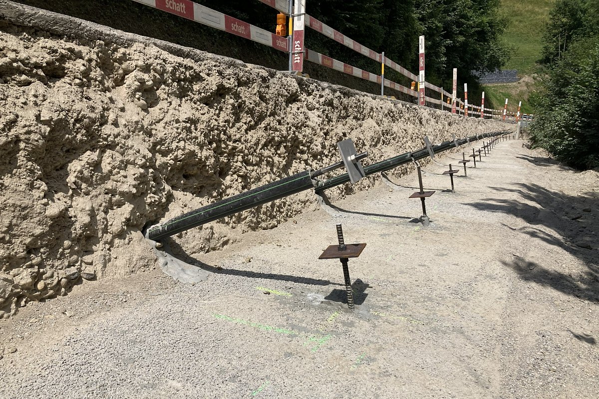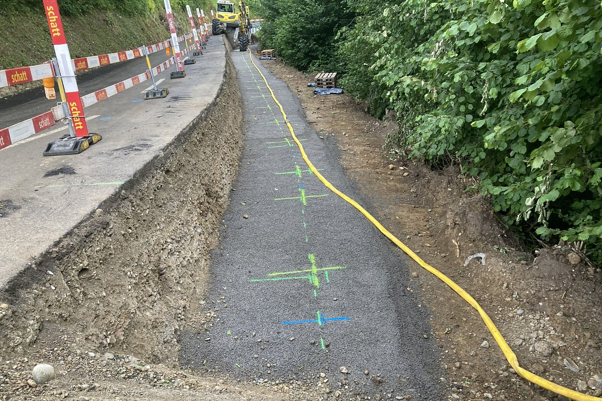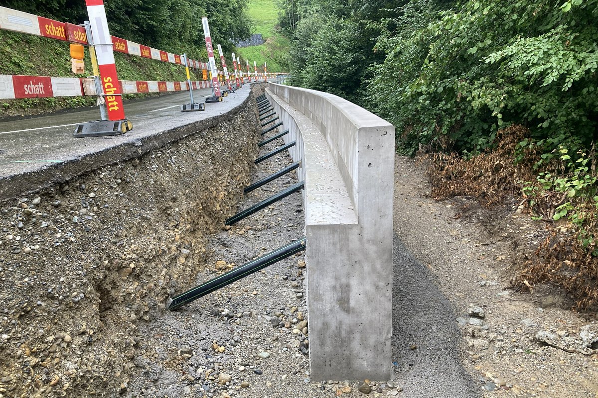 Die Kantonsstrasse K49 wurde im Bereich des Waldstücks Au–Rotbühl auf einer Länge von rund 600 m mittels Deckschichtersatz saniert. Auf einer Fläche von etwa 3'700 m² wurde der bestehende Belag abgefräst und entsorgt, anschliessend eine 50 mm starke Deckschicht AC 11 S im Hocheinbau eingebaut. Risse und bestehende Belagsfugen wurden bei Bedarf lokal mit einem Asphaltbewehrungsnetz überarbeitet. Zusätzlich wurde auf einer Länge von rund 54 m eine neue Böschungssicherung erstellt. Diese besteht aus einem Ortbetonriegel mit Ankern und Mikropfählen, an dem eine Leitschranke montiert wurde. Die Arbeiten erfolgten unter Aufrechterhaltung des Verkehrs.