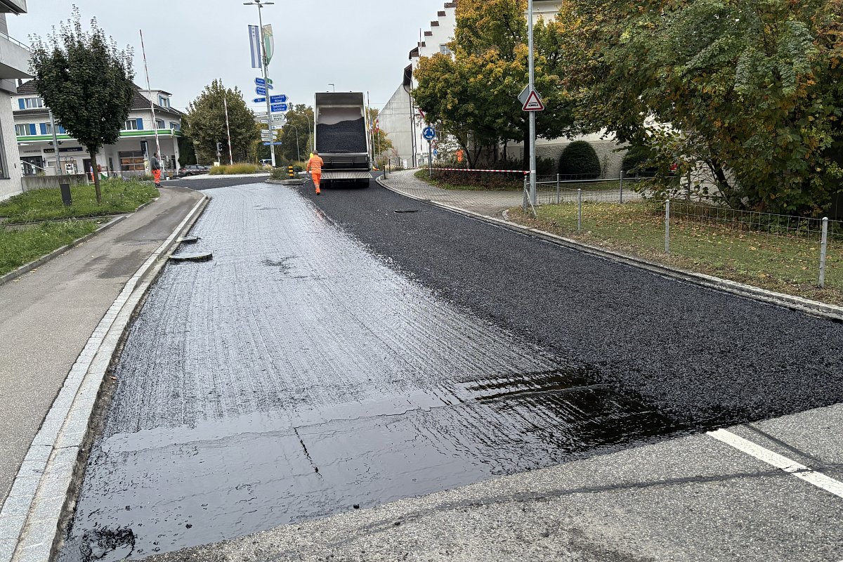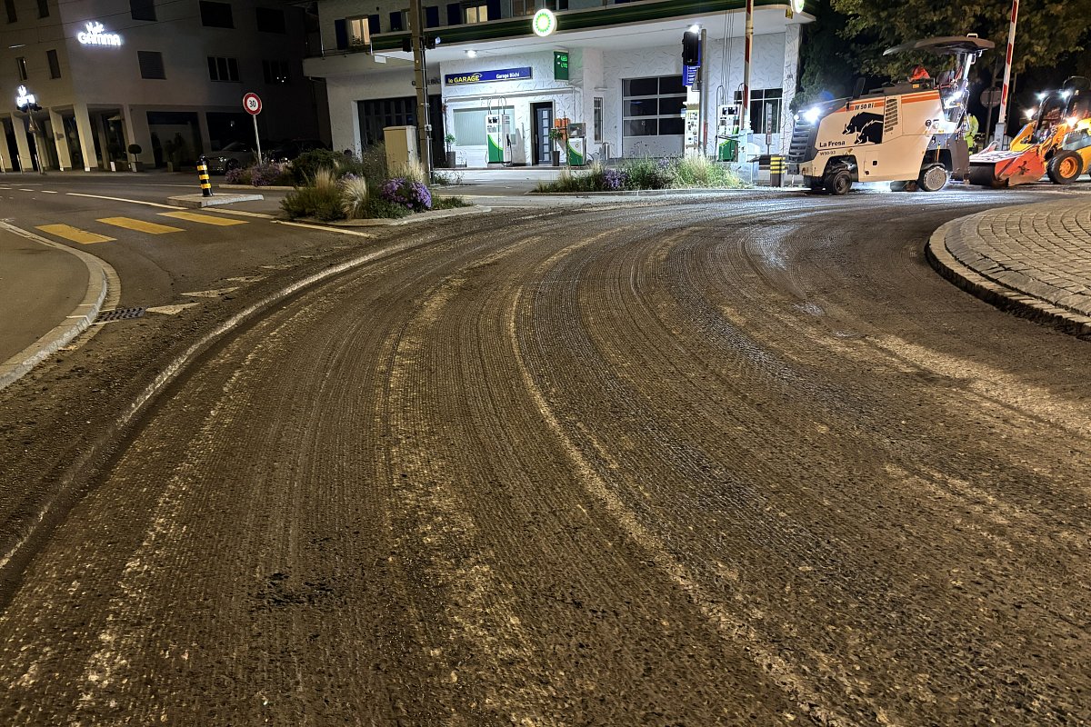 Der Kreisel Q20 in Münchwilen sowie ein Teil der Kantonsstrasse Q20 mussten aufgrund des schlechten Zustands instand gestellt werden, damit die Lebensdauer der Beläge verlängert wird. Auf der Kantonsstrasse Q20 wurde der Balag auf einer Fläche von ca. 610 m² 5 cm gefräst, ganzfläche eine SAMI inkl. Asphaltbewehrungsnetz aufgebracht und eine neue Deckschicht eingabaut. Der Kreisel wurde auf einer Fläche von ca. 825 m² 9 cm gefräst, ganzflächig eine SAMI aufgebracht und 9 cm AC B 22 H mit Einstreuung 8 – 9 kg/m² AC 4 L eingebaut. Aufgrund des hohen Verkehrsaufkommens beim Kreisel mussten die Arbeiten von Freitag 21.00 Uhr bis Sonntag ausgeführt werden. Da die FW-Bahn den Kreisel quert, mussten die Arbeiten zusätzlich mit der Bahn koordiniert und während einer Phase mit Bahnersatz ausgeführt werden.