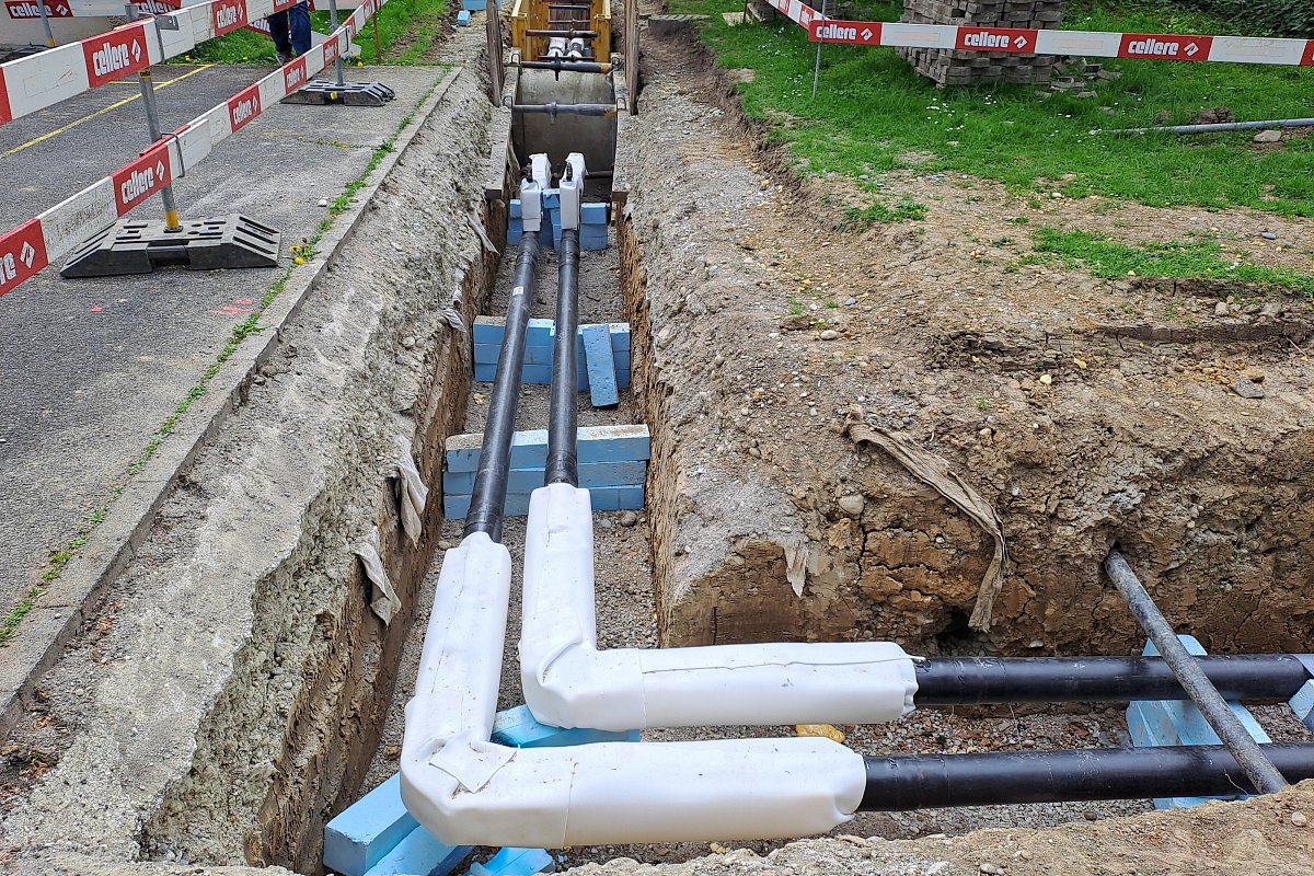 Im Jahr 2020 wurde die zentrale Heizung der Überbauung Büelhof an das QWV-Waser-Netz angeschlossen (vgl. Referenz Nahwärmeleitung, Erweiterung Büelhof). Die bisher interne Wärmeleitung wurde nun mit einer Dimension DN 150/280 in die Strasse verlegt und die angeschlossenen Liegenschaften sowie das Schulhaus und die Turnhalle neu an das Netz angebunden. Die neue Leitung ist so ausgelegt, dass sie zu einem späteren Zeitpunkt als Teil einer Ringleitung zur Wärmeversorgung des Stadtteils Winterthur-Seen dienen kann; der dafür notwendige Abgang wurde bereits vorbereitet. Im Zuge der Arbeiten ersetzte Stadtwerk Winterthur zudem die bestehende Wasserleitung.
