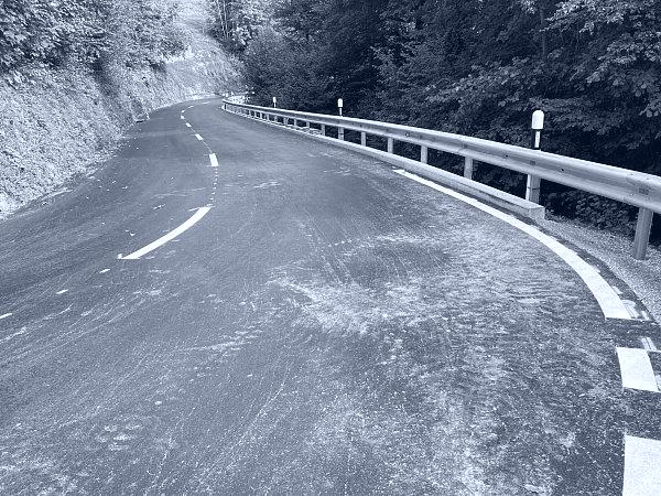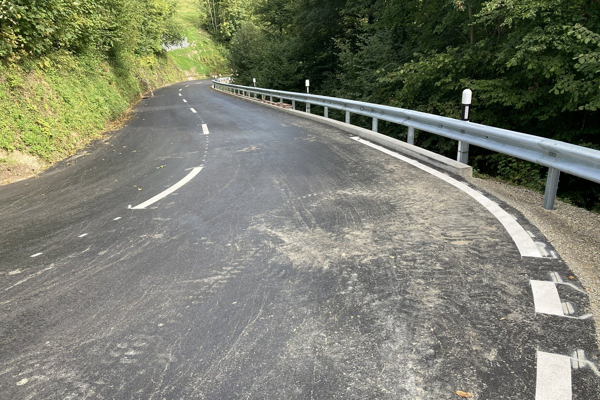 Die Kantonsstrasse K49 wurde im Bereich des Waldstücks Au–Rotbühl auf einer Länge von rund 600 m mittels Deckschichtersatz saniert. Auf einer Fläche von etwa 3'700 m² wurde der bestehende Belag abgefräst und entsorgt, anschliessend eine 50 mm starke Deckschicht AC 11 S im Hocheinbau eingebaut. Risse und bestehende Belagsfugen wurden bei Bedarf lokal mit einem Asphaltbewehrungsnetz überarbeitet. Zusätzlich wurde auf einer Länge von rund 54 m eine neue Böschungssicherung erstellt. Diese besteht aus einem Ortbetonriegel mit Ankern und Mikropfählen, an dem eine Leitschranke montiert wurde. Die Arbeiten erfolgten unter Aufrechterhaltung des Verkehrs.