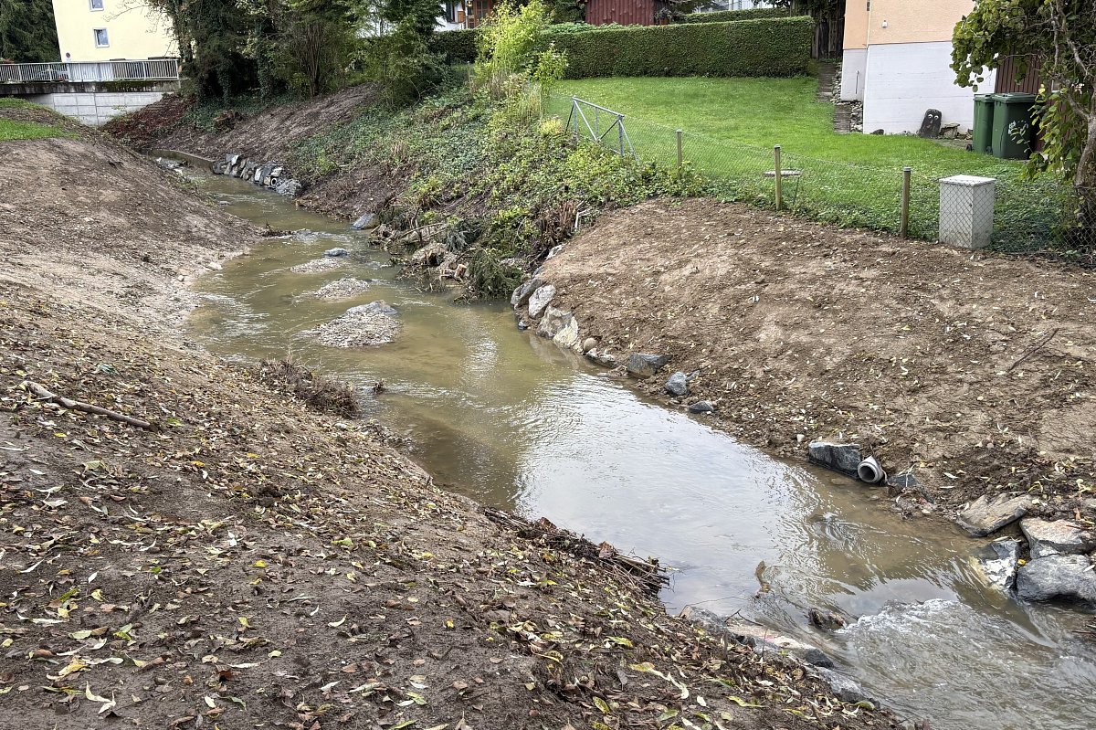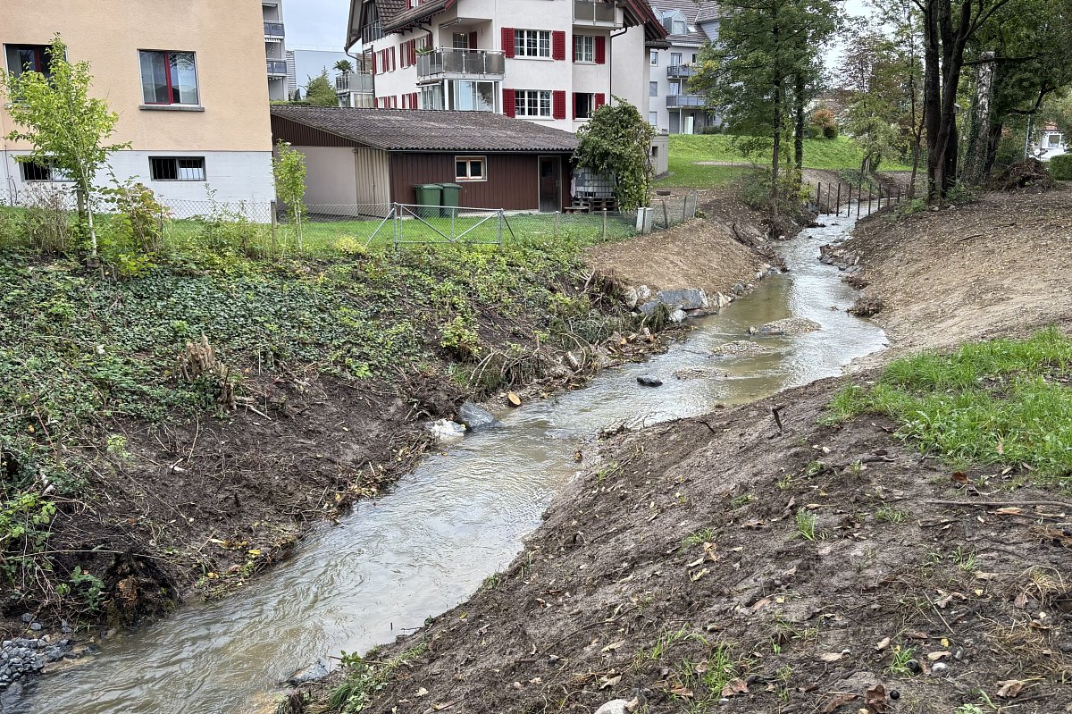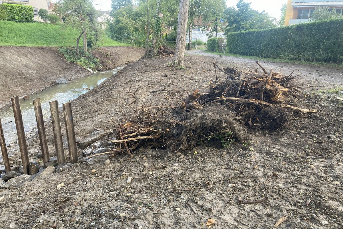 Beim vorliegenden Projekt handelt es sich um ein reines Revitalisierungsprojekt, da im Abschnitt km 0.900 – 1.010 keine Hochwassergefährdung bestand. In diesem Bereich wurde die Gewässersohle verbreitert und die rechtsufrige Böschung abgeflacht. Dadurch wird das Gewässer für die Bevölkerung besser zugänglich und erlebbarer. Mit dem Rückbau der bestehenden Uferverbauungen konnte die Breitenvariabilität des Baches erhöht werden. Zudem wurden neue ökologische Strukturen wie Steinhaufen, Totholzelemente und Asthaufen eingebracht, um den Lebensraum für Flora und Fauna nachhaltig zu verbessern.