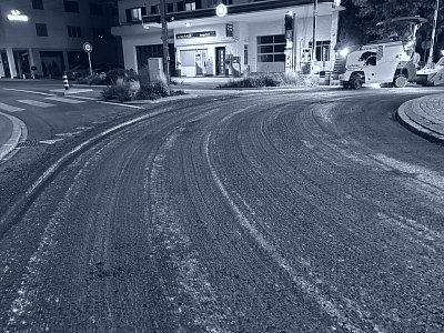 Der Kreisel Q20 in Münchwilen sowie ein Teil der Kantonsstrasse Q20 mussten aufgrund des schlechten Zustands instand gestellt werden, damit die Lebensdauer der Beläge verlängert wird. Auf der Kantonsstrasse Q20 wurde der Balag auf einer Fläche von ca. 610 m² 5 cm gefräst, ganzfläche eine SAMI inkl. Asphaltbewehrungsnetz aufgebracht und eine neue Deckschicht eingabaut. Der Kreisel wurde auf einer Fläche von ca. 825 m² 9 cm gefräst, ganzflächig eine SAMI aufgebracht und 9 cm AC B 22 H mit Einstreuung 8 – 9 kg/m² AC 4 L eingebaut. Aufgrund des hohen Verkehrsaufkommens beim Kreisel mussten die Arbeiten von Freitag 21.00 Uhr bis Sonntag ausgeführt werden. Da die FW-Bahn den Kreisel quert, mussten die Arbeiten zusätzlich mit der Bahn koordiniert und während einer Phase mit Bahnersatz ausgeführt werden.
