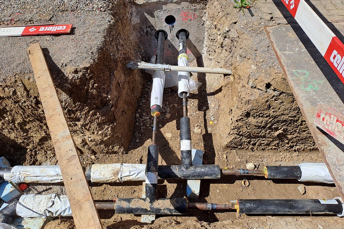 Im Jahr 2020 wurde die zentrale Heizung der Überbauung Büelhof an das QWV-Waser-Netz angeschlossen (vgl. Referenz Nahwärmeleitung, Erweiterung Büelhof). Die bisher interne Wärmeleitung wurde nun mit einer Dimension DN 150/280 in die Strasse verlegt und die angeschlossenen Liegenschaften sowie das Schulhaus und die Turnhalle neu an das Netz angebunden. Die neue Leitung ist so ausgelegt, dass sie zu einem späteren Zeitpunkt als Teil einer Ringleitung zur Wärmeversorgung des Stadtteils Winterthur-Seen dienen kann; der dafür notwendige Abgang wurde bereits vorbereitet. Im Zuge der Arbeiten ersetzte Stadtwerk Winterthur zudem die bestehende Wasserleitung.