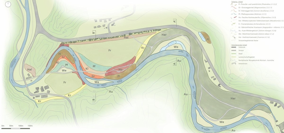 Landschaftsplanung, Freiraum- und Erholungskonzept, Flussrevitalisierung, Hochwasserschutz, Ökologische Vernetzung, Entwicklung Auenlandschaften, Bewirtschaftungskonzepte, Definition von Leit- und Zielarten, Konzeptplan und Massnahmenkatalog, Visionsbilder / konzeptionelle Visualisierungen