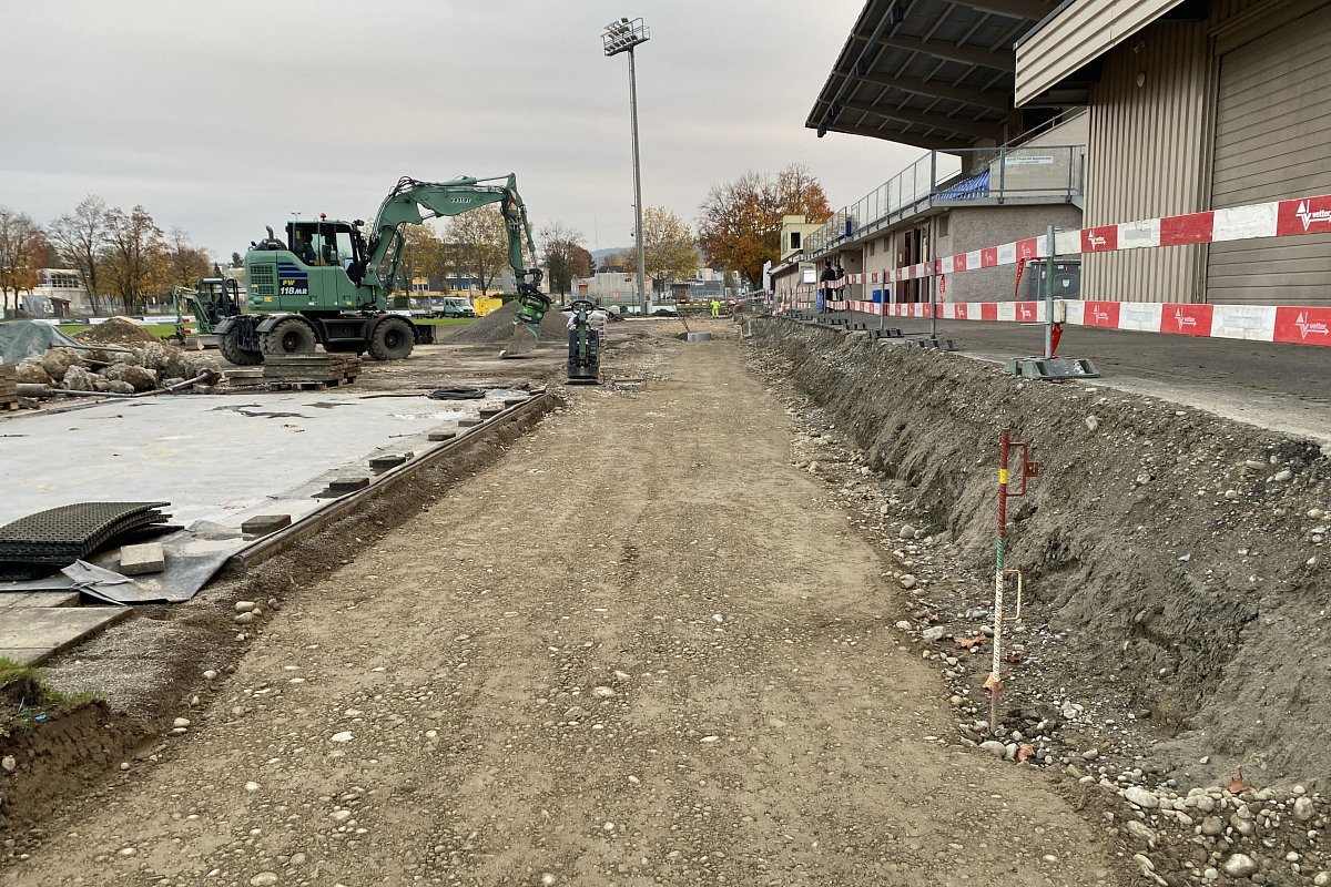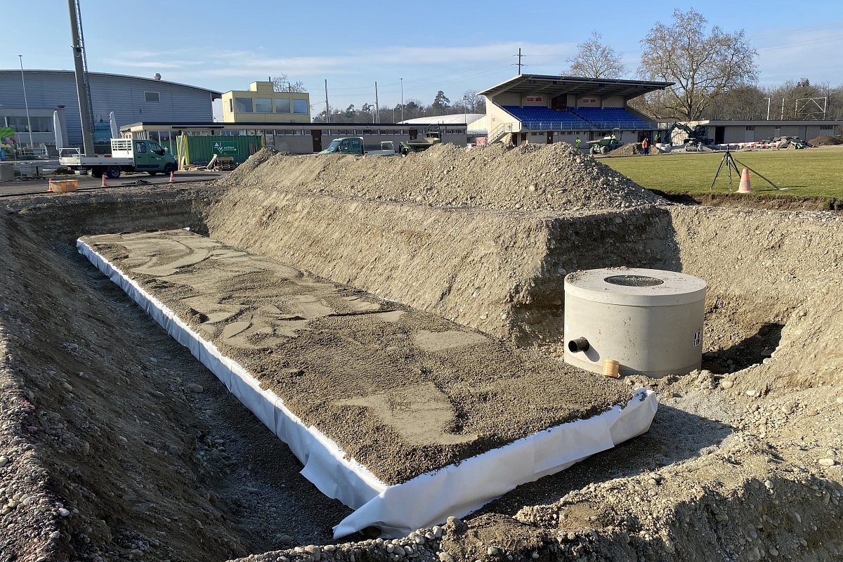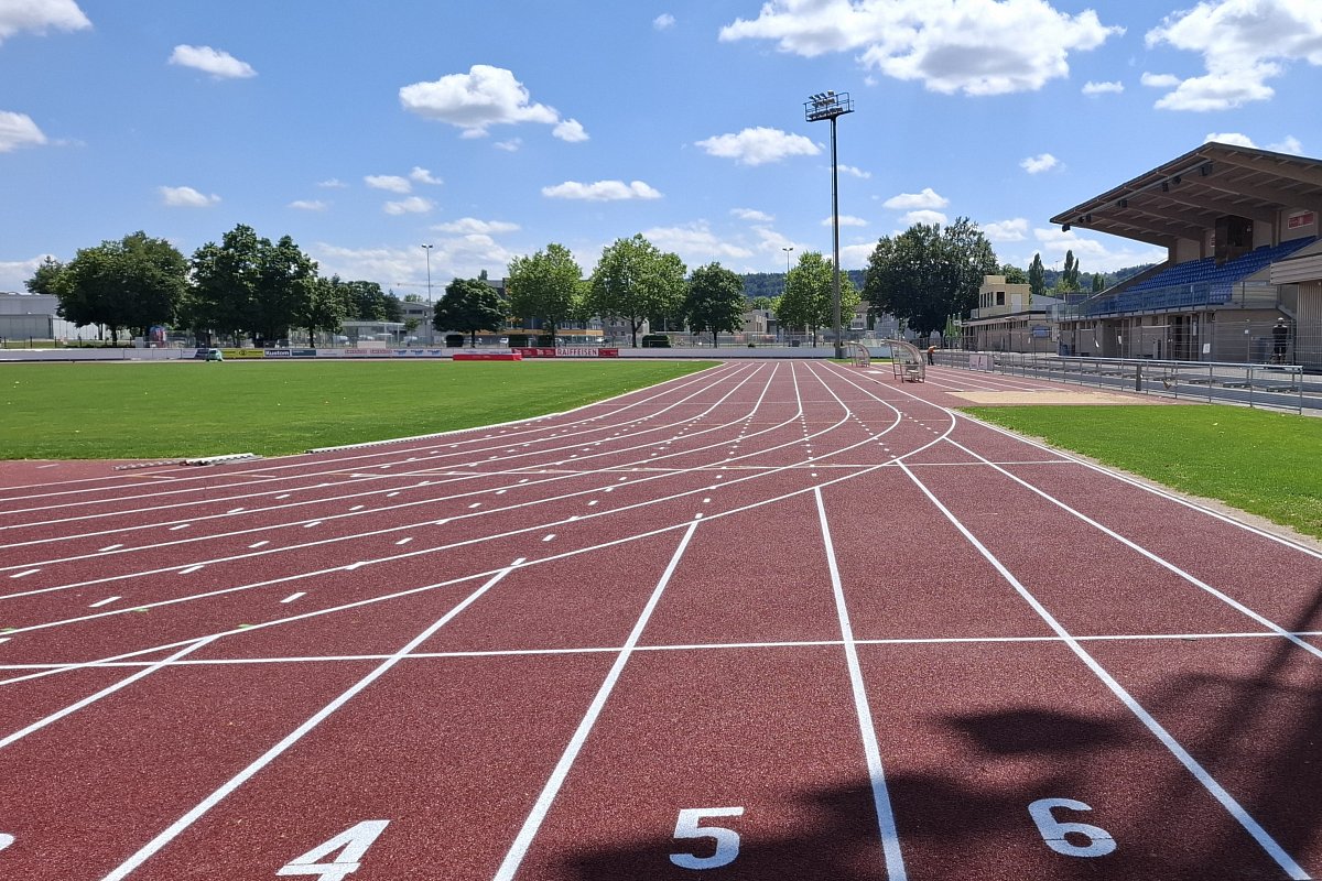 fallende Regenwasser führt via einer unterirdischen Retentionsanlage über Filterschächte in die Versickerung. Zudem wurden die Tribünenstufen auf der Westseite der Rundbahn neu erstellt. Weiter wurden zur Einhaltung der Anforderungen des Leichtathletikverbands die Zuschauerabschrankungen rundum die Rundbahn mit einem Mindestabstand von 1.0 Meter zur Rundbahn versetzt. Die Sanierung trägt dazu bei, die Qualität und Sicherheit der Leichtath-