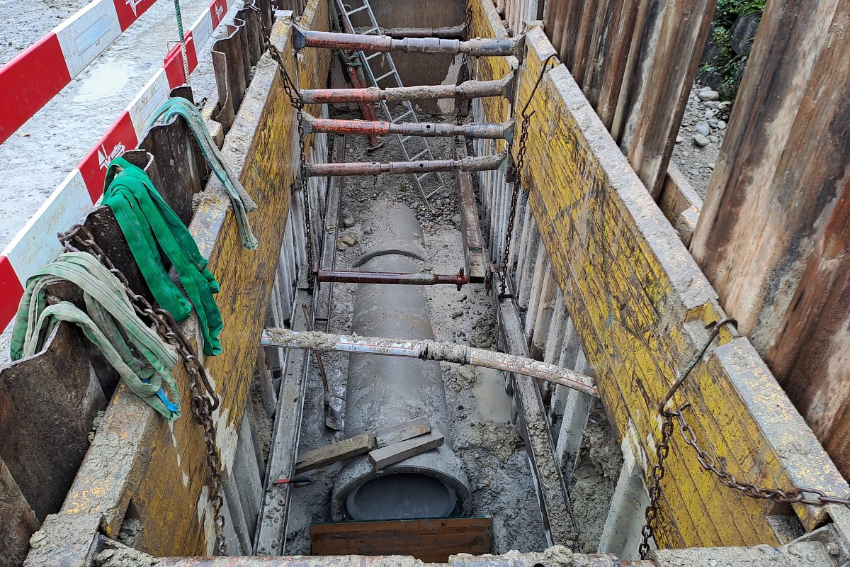 Im Zuge der Arbeiten für den Hochwasserschutz wurden zugleich die Werkleitungen für die Elektro- und Wasserversorgung erneuert sowie die Weingartenstrasse über die gesamte Länge von rund 360 m saniert.