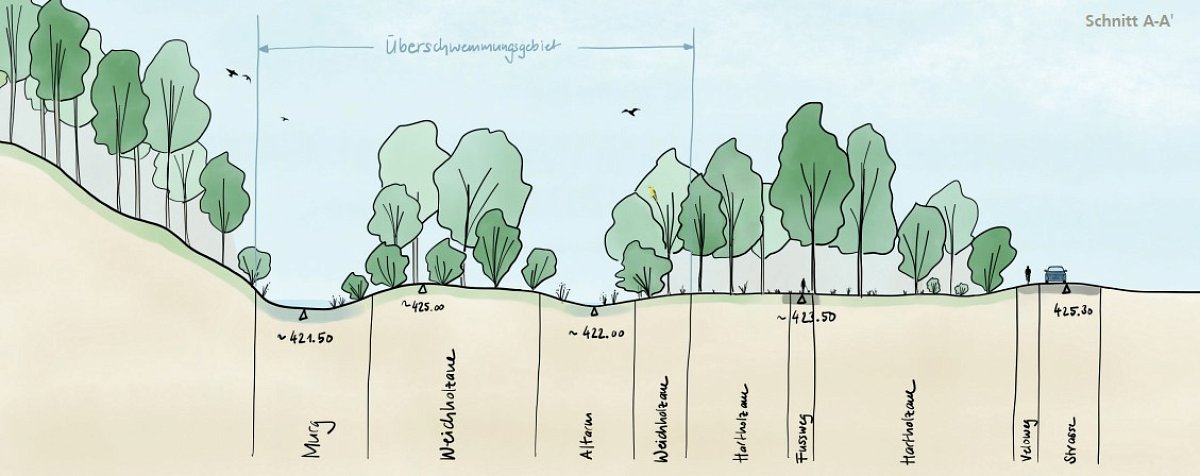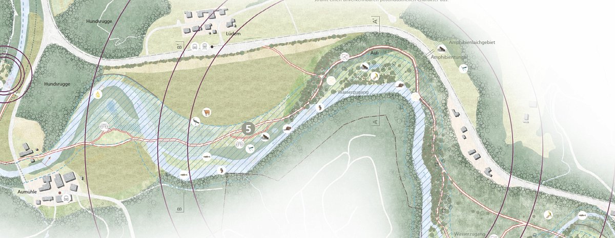 Landschaftsplanung, Freiraum- und Erholungskonzept, Flussrevitalisierung, Hochwasserschutz, Ökologische Vernetzung, Entwicklung Auenlandschaften, Bewirtschaftungskonzepte, Definition von Leit- und Zielarten, Konzeptplan und Massnahmenkatalog, Visionsbilder / konzeptionelle Visualisierungen
