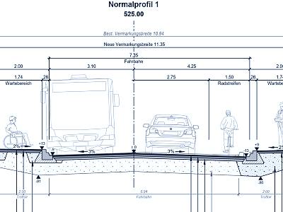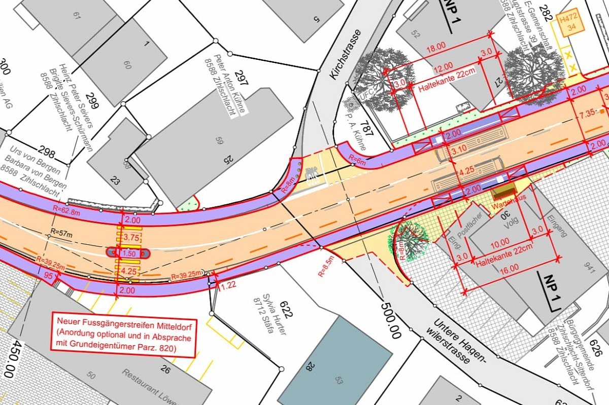 Die Ortsdurchfahrt entspricht nicht mehr den vielseitigen Anforderungen einer zeitgemässen Strasse. Das Betriebs- und Gestaltungkonzept (BGK) hat das Ziel, die Sicherheit und die Aufenthaltsqualität im bebauten Strassenraum zu erhöhen. Insbesondere sind Gefahrenstellen zu eleminieren und die Verkehrssicherheit von Fussgängern und Velofahrenden zu verbessern. Im Rahmen des BGK wird die Fussgängerlängsführung neu angeordnet. Die bestehenden Busbuchten werden als Fahrbahnhaltestellen ausgeführt. Der dadurch gewonnene Platz wird begrünt. Für den bergauf fahrenden Veloverkehr wird ein Radstreifen markiert. Zur Verbesserung der Verkehrssicherheit sind zudem Fussgängerschutzinsel vorgesehen.